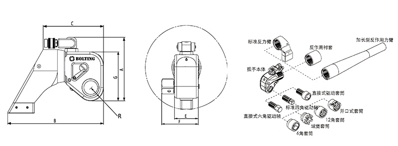 產(chǎn)品的選取依據(jù)螺栓鎖緊和拆松扭矩而定,扭矩值會因螺栓直徑和強(qiáng)度等級不同而有所變化。 |
