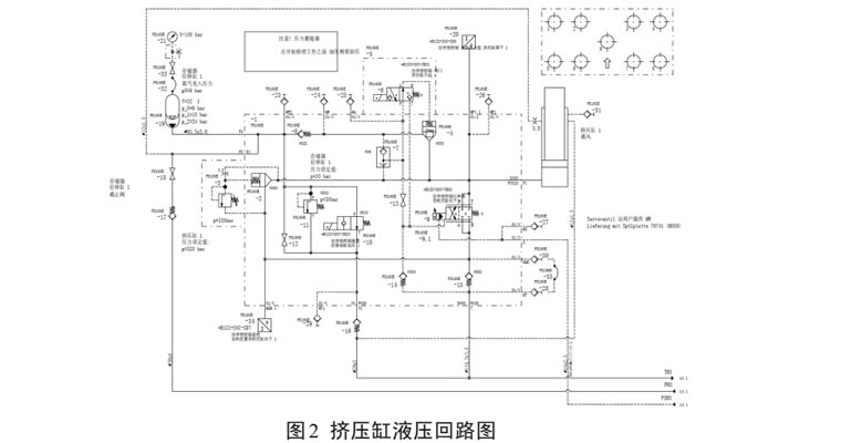拉伸墊的擠壓力是依靠滑塊壓上拉伸墊而被動產(chǎn)生的壓力,壓力大小的控制由伺服閥來實現(xiàn)。常見的壓力下超故障有缸體活塞密封泄漏、安全閥損壞、伺服閥損壞、預(yù)充油液不足等形式。首先擠壓缸上行是依靠 20bar 的預(yù)充壓力推動活塞桿跟隨頂冠上行至上死點,由于在該過程中每個缸的壓力和位置都沒有監(jiān)控,即使出現(xiàn)預(yù)充壓力不足、活塞沒有上行至上死點都不會故障報警,如圖2所示。在沖壓力下超故障出現(xiàn)以后,可以在操控面板的幫助界面查看擠壓缸預(yù)充壓力是否正常,排除預(yù)充壓力是否合適以后,再排查伺服閥以及伺服閥控制模塊。在長時間停機或者拉伸墊大修以后出現(xiàn)擠壓力下超故障,應(yīng)優(yōu)先檢查插裝式安全閥。由于插裝式安全閥控制油和系統(tǒng)油都是來自擠壓缸的油,而正常情況下安全閥芯都不動作,閥芯活動間隙被油泥填充,在檢修或者啟動期間,如果安全閥芯被意外開啟,復(fù)位彈簧將不能使閥芯復(fù)位。閥芯沒有復(fù)位,擠壓缸下腔的就不能建立起需要的壓力,導(dǎo)致故障產(chǎn)生。