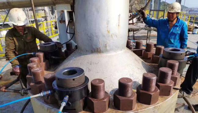 如果電壓沒(méi)有問(wèn)題,電動(dòng)超高壓泵站的額定最大壓力為150MPa,而泵站卻只能打到120MPa。出現(xiàn)這種情況我們基本就可以斷定是泵站或者液壓螺栓拉伸器內(nèi)部出現(xiàn)了泄漏。可以單獨(dú)打壓排查是泵站還是螺栓拉伸器出現(xiàn)了泄漏。如果不連接螺栓拉伸器泵站壓力沒(méi)有問(wèn)題,那就是螺栓拉伸器密封泄露,需要更換內(nèi)部密封。如果單獨(dú)打壓泵站還是無(wú)法升到最大壓力,那么就可以確定為泵站泄漏。依次檢查調(diào)壓閥、截止閥閥芯是否磨損需要更換。如果調(diào)壓閥、截止閥沒(méi)有問(wèn)題,那就是泵站內(nèi)部出現(xiàn)了泄漏,需要聯(lián)系設(shè)備廠家進(jìn)行檢測(cè)維修。