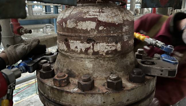 經(jīng)常干檢修安裝的人都知道,無論你用什么液壓扳手、電動(dòng)扭矩扳手、手動(dòng)扭矩扳手、氣動(dòng)扭矩扳手等扭矩工具來緊固法蘭螺栓都會(huì)出現(xiàn)你在緊這邊那邊緊過的螺栓又松了的情況。這是因?yàn)槁菟ㄊ艿綉?yīng)力影響,所以才會(huì)出現(xiàn)這個(gè)緊了那邊又松了的情況。也就是說如果我們預(yù)緊時(shí)采用一次100%的預(yù)定力矩去打法蘭螺栓越晚打的螺栓預(yù)緊力接近螺栓所需預(yù)緊力,但越早打完的螺栓受引力影響在緊后面螺栓時(shí)不斷松弛,當(dāng)全部打完時(shí)加載在先打螺栓上的有效預(yù)緊力已大幅消減,法蘭各部位螺栓無法得到均勻有效預(yù)緊力而發(fā)生泄漏。而這也并非是理論推測(cè),在我們經(jīng)歷的很多現(xiàn)場(chǎng)檢修施工中發(fā)現(xiàn)施工隊(duì)伍完成預(yù)緊之后我們的管控人員抽檢很多螺栓都是松的就是這個(gè)原因造成。