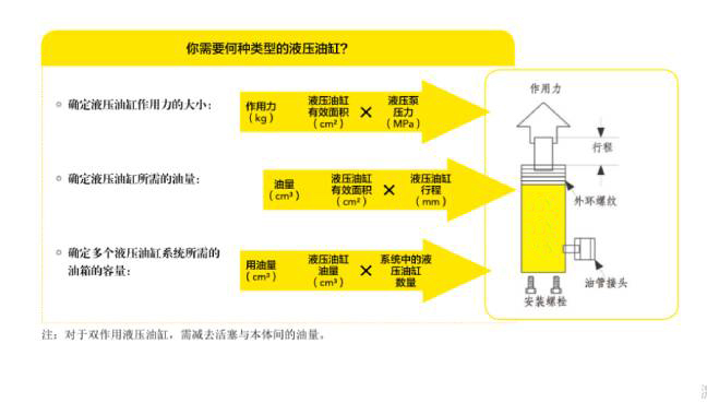 在選擇液壓油缸時(shí)首先得確定油缸的噸位。一般來說,我們所選的液壓油缸噸位必須要比負(fù)載高20%噸位。無論是在哪種工況應(yīng)用,液壓油缸的本體高度加上行程是否有足夠的使用空間決定了這一型號能否用。因此,油缸的本體高度及行程是必須要考慮的,且所選油缸行程必須要選擇有足夠余量的。