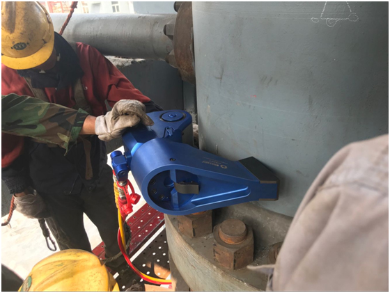 現(xiàn)場(chǎng)的螺栓工況比較狹隘,所定制的薄壁套筒一次吻合,使用液壓扳手一次性到位,管道試壓無(wú)泄露,為客戶(hù)節(jié)省了相當(dāng)寶貴的施工時(shí)間。