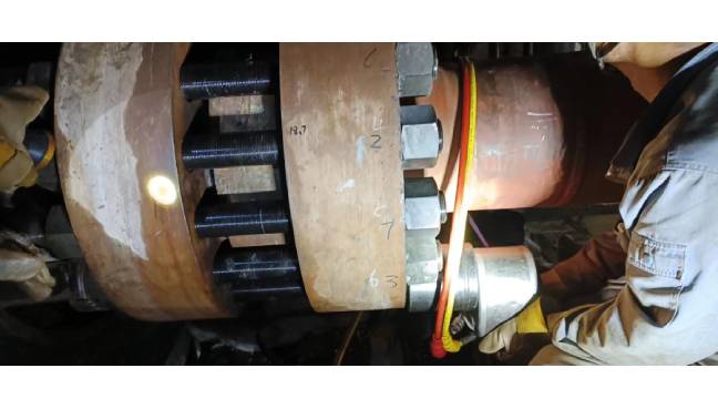 其實(shí)大型水輪機(jī)的很多位置也都是使用使用高強(qiáng)螺栓連接,像基礎(chǔ)環(huán)、座環(huán)、蝸売、尾水管排水盤(pán)形閥及其附件、蝸殼排水盤(pán)形閥及其附件機(jī)坑里襯底環(huán)、頂蓋、轉(zhuǎn)輪導(dǎo)葉及操作機(jī)構(gòu)、接力器、主軸及密封、輪機(jī)導(dǎo)軸承大軸自然補(bǔ)氣裝置等。這些螺栓的安裝預(yù)緊之后需要經(jīng)受住惡劣的運(yùn)行環(huán)境,因此預(yù)緊力要求也是比較高。水輪機(jī)安裝預(yù)緊或者檢修做采用的螺栓預(yù)緊工具一般是以液壓螺栓拉伸器為主。液壓螺栓拉伸器軸向拉伸,螺栓上所加載的預(yù)緊力損耗較少,有效加載更多。但在一些特殊的位置,螺栓周圍空間特別小,只能使用薄型的中空液壓扳手來(lái)進(jìn)行預(yù)緊拆卸。因此,水輪機(jī)的安裝檢維修既需要螺栓拉伸器也需要液壓扳手。