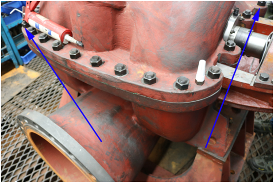 以上為水泵圖片,假設(shè)兩個藍(lán)色箭頭指向的螺栓為對角,根據(jù)圖片顯示,高度和側(cè)面空間不受限制,采用電動扳手,氣動扳手和液壓扳手都可以作為終緊工具,電動扳手相對于氣動扳手來說精度更高一些,電動扳手相對于液壓扳手效率更高一些,并且無需配套液壓泵站,為什么不采用電動扳手或者氣動扳手呢?